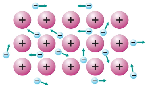 2. 金属键的本质 描述金属键本质的最简单理论是 「电子气理论」。该理论把金属键形象地描绘为金属原子脱落下来的价电子形成遍布整块晶体的「电子气」,被所有原子所共用,从而把所有的金属原子维系在一起,形成一种「巨分子」