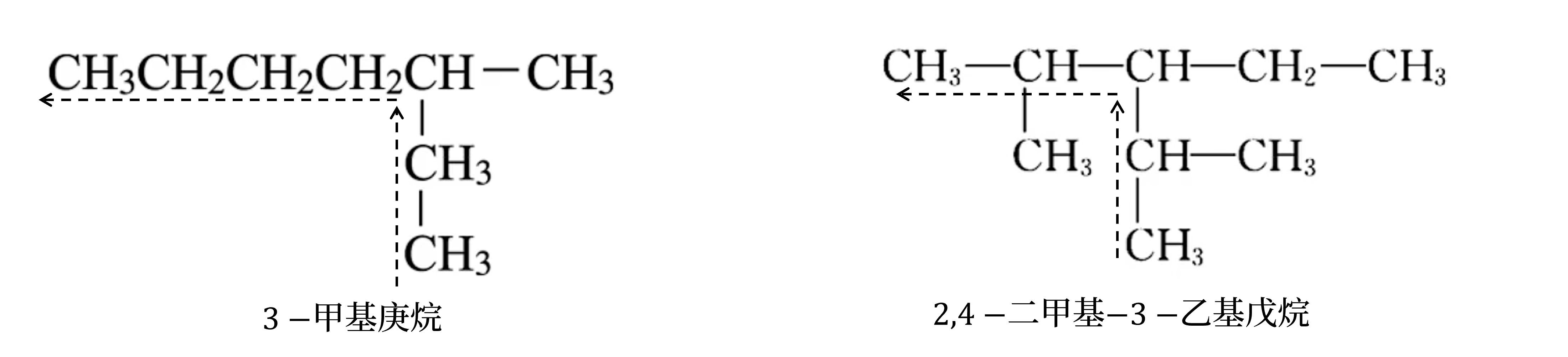- 同「近」考虑「简」:有两个不同的支链,且分别处于距主链两端同近的位置则从 支链较简单的一端 开始编号