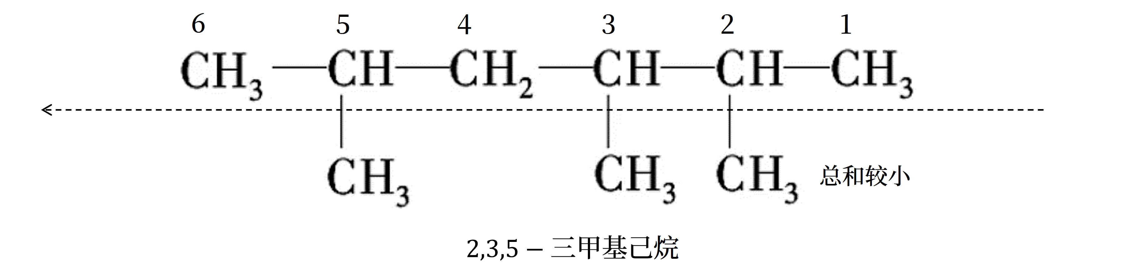 - 同「近」同「简」考虑「小」:若有两个相同的支链,且分别处于距主链两端同近的位置,而中间还有其他支链,从主链的两个方向编号,可得到两种不同的编号序列,两序列中各支链 位次和最小者 即为正确的编号